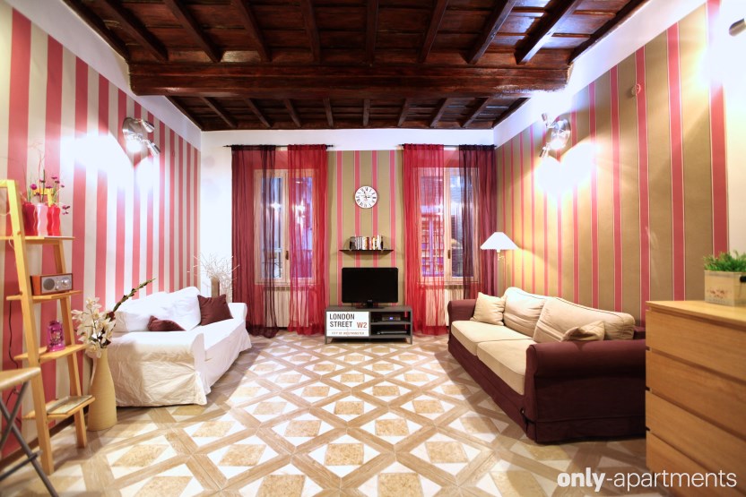 O tal vez preferís algo menos ostentoso, como este otro apartamento en Roma, más moderno y con un gran reloj presidiendo el salón para que no os perdáis ni un segundo de la cuenta atrás.